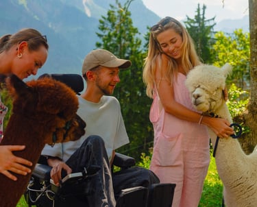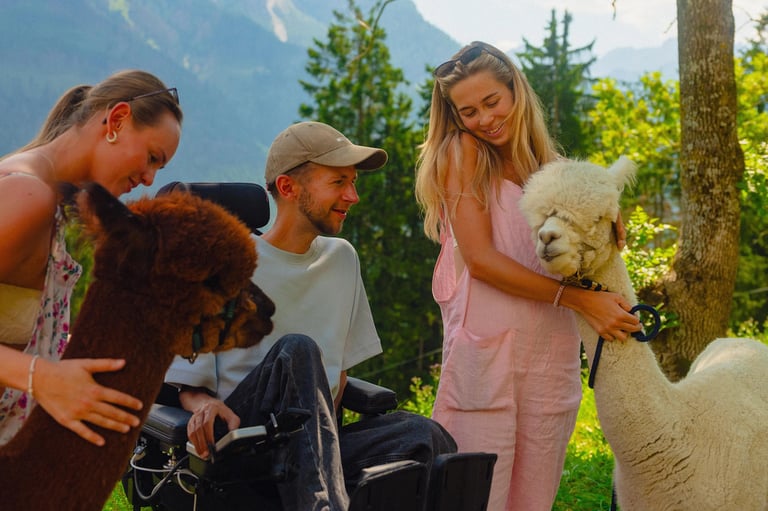 Bei unseren geführten Alpakawanderungen erleben Sie die pure Entschleunigung in der Natur und lassen den Alltag hinter sich. Für Kinder bieten wir eine besondere Therapie mit Alpakas an, die sanfte Unterstützung und eine beruhigende Atmosphäre schafft. Halten Sie die unvergesslichen Momente bei unseren Fotoshootings mit Alpakas fest – ideal für besondere Anlässe.